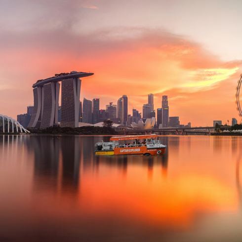 搭乘船长探索号鸭子船,开启独一无二的日落巡游之旅!这艘二战时期改装的水陆两用车,将带您先在陆地上穿梭于新加坡著名地标,随后直接驶入滨海湾,感受从城市到海上的奇妙转换。