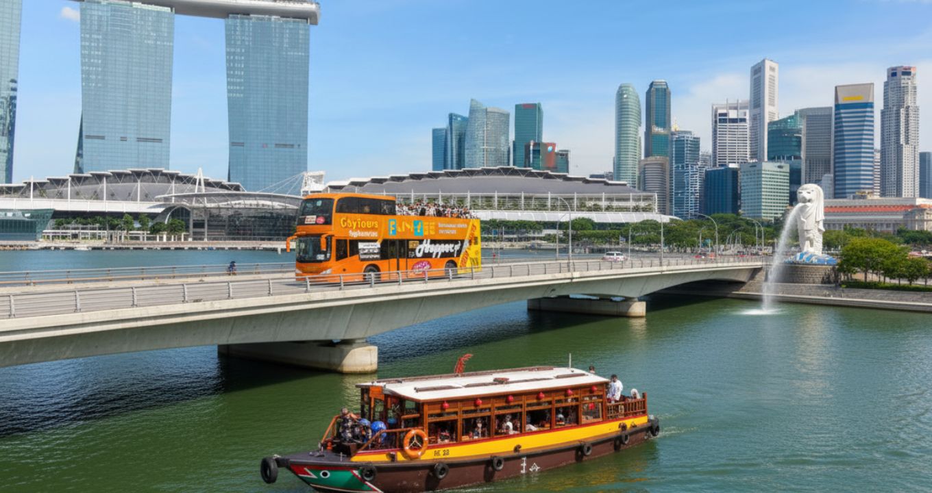 - FunVee Open-Top Bus Tour (2 Hours): Cover 2 routes – Marina Line & City Line – and see top landmarks like Marina Bay Sands, Merlion Park, Esplanade, Orchard Road, and Gardens by the Bay.