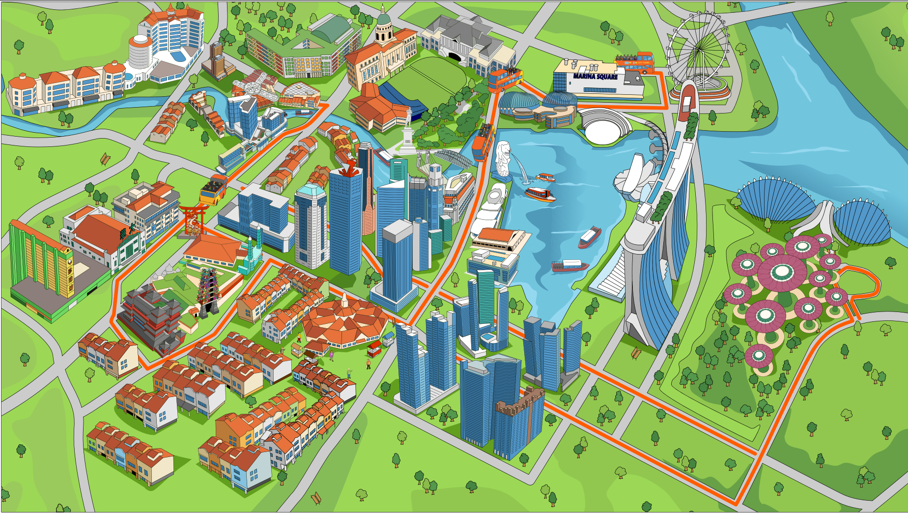 - Iconic Landmarks: Pass by the DNA-inspired Helix Bridge and the Neoclassical Fullerton Hotel, with a perfect photo opportunity of the Merlion against the Marina Bay Sands backdrop.